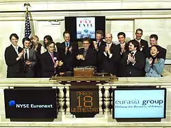 Announcing a partnership with NYSE Euronext, Eurasia Group rang the opening bell at the New York Stock Exchange on March 18, 2009.[15]