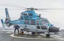 - Maritime transport and search & rescue version of the AS365 N3.[4] Offered with various armaments, including cabin-mounted 20mm cannon, AS 15 TT anti-ship missile, Mark 46 torpedo and Whitehead A.244/S torpedo.