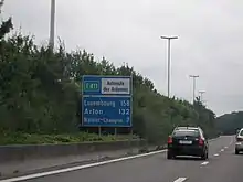 ![]() European routes in Belgium with E411 in bright green (not shown: continues 71 km through France) | |