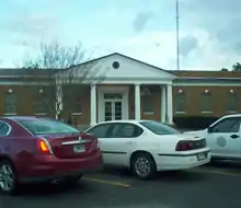 The current Evans County courthouse was completed in 1923. The courthouse is in Claxton and was designed in the neoclassical revival tradition by architect J.J. Baldwin.[4][6] Prior to the building of the current courthouse, all of the county's business was held in the White Building, a three-story edifice built by Mr. R. King White and later bought by Mrs. Ben Daniel. Mrs. Daniel's husband, Dr. Ben Daniel, used the building as his office.[4]
