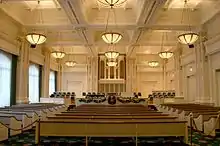 - 2000 – Elder Alexander B. Morrison of the First Quorum of the Seventy addressed members of Evergreen at their 10th annual conference which was held in the church's Joseph Smith Memorial Building and stated, "Avoid as the plague social interaction with persons who justify, encourage or engage in homosexual behavior. Stay away from places where those challenged by same-gender attraction congregate."[5]