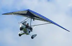 The aircraft features a strut-braced hang glider-style high-wing, weight-shift controls, a two-seats-in-tandem open cockpit with a cockpit fairing, tricycle landing gear with wheel pants and a single engine in pusher configuration.[1]