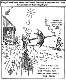 - ^ Describing the comic in Popular Science Monthly in an April 1928 article, Fox stated, "There are always fools in the world who think it is funny to hand out exploding cigars, so I drew a picture of a yokel enjoying such a gift cigar in complete safety. This device included a bamboo tube extending through an umbrella parallel to the handle so that a cigar inserted in the ferrule end might be safely smoked from behind the shelter of the umbrella."[2]