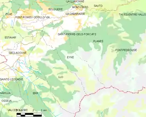 Map of Eyne and its surrounding communes
