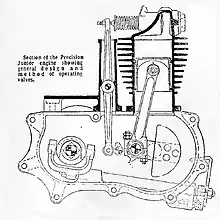 F.E. Baker sold engines to motorcycle manufacturers and to dealers under the Precision name, and for some of the larger customers they had their own name cast into the timing cover and the word Precision absent from the crankcase casting. An article in 1914 says that the Peerless Precision V-twin made solely for export was now to be made available in the home market 'under certain circumstances'.[5] Differences from the UK engines included round cylinder fins instead of square and an external flywheel. There was a thriving export market for Precision engines, especially in Australia, where companies like Lewis of Adelaide used the Precision engines. Engines were distributed through sole agents as follows :