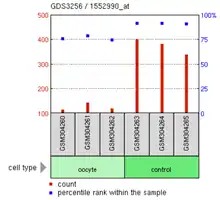 The graph on the right is from a study analyzing the Metaphase II stage oocytes matured in vivo. The goal of this study was to identify genes and deduced pathways from human oocyte that can help us understand oogenesis, folliculogenesis, fertilization, and embryonic development.[16] The control consisted of RNA from 10 different normal human tissues: skeletal muscle, kidney, lung, colon, liver, spleen, breast, brain, heart, and stomach. The results from this study indicate that expression of FAM71E2 in oocytes is very low compared to that of normal adult tissue from various parts of the body. Human protein atlas supports these observations since there was no expression during the earliest phase of development (embryoid body). However, Human protein atlas also showed there was very minimal expression in the fetus.