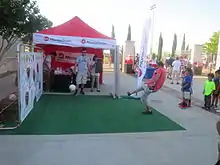 In March 2005, FC Dallas signed Guatemalan forward Carlos Ruiz, who had scored 50 goals in 72 games for the Galaxy and earned the MVP award for helping them to the 2002 MLS Cup.[20] On August 6, FC Dallas played their inaugural game at Pizza Hut Park and tied the New York/New Jersey MetroStars, 2–2.[21] Ranked second in the West behind the San Jose Earthquakes, Dallas returned to the playoffs for the first time in two seasons, losing in the conference semifinals to Colorado in a penalty kick shootout, with Roberto Miña's attempt saved by Joe Cannon.[22] In 2006, the team finished the regular season at the top of the Western Conference,[23] but lost in the playoffs in the conference semifinals again, leading to Clarke's dismissal. He was replaced by Steve Morrow. In 2007, a third consecutive playoff appearance ended at the same stage with a 4–2 aggregate defeat to fellow Texas club, the Houston Dynamo, who would go on to win their second consecutive MLS Cup.[24] In 2005 and 2007, Dallas reached their first two U.S. Open Cup finals since their 1997 victory, losing both by one-goal margins to the Galaxy and the New England Revolution respectively.[25][26] For the following two seasons, Dallas missed the MLS playoffs. During the 2008 season, Morrow was replaced by Schellas Hyndman. In 2009, the club signed Bryan Leyva as the club's first Homegrown Player from its development academy.[27]