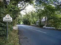 Fairy Bridge, Isle of Man (Manx: Ballalona - Glen Farm[1]) is a small bridge over the Santon Burn in the Isle of Man, located on the primary A5 Port Erin to Douglas road, at grid reference 305720, on the parish boundary between Santon and Malew (and also the boundary between the sheadings of Middle and Rushen). A superstition associated with the Fairy Bridge is that passers-by must greet the fairies as they cross it; it is considered bad luck not to greet them.[2]