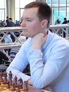 At the end of the game, feeling insulted, Tregubov refused to shake his hand.[16] Two days after the game, Tregubov and his team would complain to arbiters about his suspect strong play, and his frequent toilet breaks. On the second day, Bindrich had the black pieces against Sebastian Siebrecht and on move 10, he took a second toilet break. Siebrecht, having played such cheaters as Christoph Natsidis in the past, suspected that he was using an analysis program on his smartphone.[17] On Bindrich's return an arbiter asked to search him and that he give over his smartphone, which under tournament rules, the referee is allowed to do.[18] Bindrich refused to hand it over, saying that there was private information on the phone, and he was forfeited the game.[19][20]