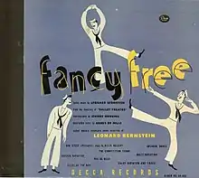 In 1946, Decca Records released an album of the score for Fancy Free (Decca DA-406), conducted by Leonard Bernstein. Issued before the introduction of the LP, it was initially released in 78rpm album format, in which four 78rpm records were bound together in a photo album style book, with a booklet included. Each of the seven movements of the ballet, plus the introductory vocal number Big Stuff, comprised one side of a 78. The sides were sequenced with the last number backing the first, the second-last the second, and so on, so that all four discs could be stacked and played in sequence, then flipped en masse to complete the album.[2] The album was rereleased in 1953 in the new 10" LP format (DL 6023).