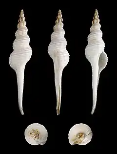 The family Fasciolariidae probably appeared about 110 million years ago during the Cretaceous[1]
