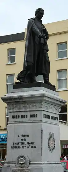 Statues of Mathew stand on St. Patrick's Street, Cork, by J. H. Foley (1864), and on O'Connell Street, Dublin, by Mary Redmond (1893).[9] There is a Fr. Mathew Bridge in Limerick City, named after the temperance reformer when it was rebuilt between 1844 and 1846.[10] The Capuchin church in Cork, Holy Trinity, stands on Father Mathew Quay and was commissioned by him.[11]