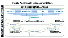 Fayol believed that managerial practices were key to predictability and efficiency in organizations. The administrative theory views communication as a necessary ingredient to successful management and many of Fayol's practices are still alive in today's workplace.[7] The elements and principles of management can be found in modern organizations in several ways: as accepted practices in some industries, as revamped versions of the original principles or elements, or as remnants of the organization's history to which alternative practices and philosophies are being offered.