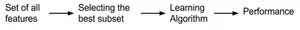 In machine learning and statistics, feature selection, also known as variable selection, attribute selection or variable subset selection, is the process of selecting a subset of relevant features (variables, predictors) for use in model construction. Feature selection techniques are used for several reasons: