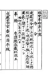 - Shillony translates the word 認む (mitomu) in the 2nd clause as "approve" rather than "recognize". Shillony (1973), p. 153
