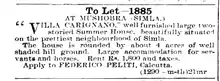 Peliti's restaurants were the centre of social activity both at Shimla and at Calcutta. The restaurant and cafe at Shimla was very popular with Shimla high society[5] and Rudyard Kipling mentions Peliti's restaurant in several of his works. In his poem Divided Destinies (1885) he compares the life of a beggar with his (a Shimla resident's) and his beggar's claim to virtue is that he does not flirt with the wives of others at Peliti's.[6] A poem to Peliti published in Punch magazine (1919) notes the flavour of the place.