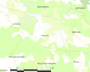 Map of Feilluns and its surrounding communes