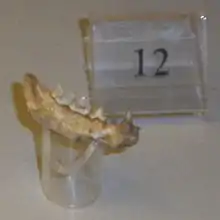 | Fragment of f. lunensis fossilized jawbone, at Museo di Paleontologia di Firenze | |