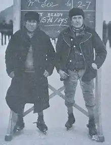 It is not known when the first skating matches were held, but by the early nineteenth century they had become a feature of cold winters in the Fens. The golden age of fen skating was the second half of the nineteenth century, when thousands of people turned out to watch such legendary skaters as Larman Register, William "Turkey" Smart, (William) "Gutta Percha" See, and brothers George 'Fish' Smart (1858-1909) and James Smart.[3] Members of the Bury Fen Bandy Club[4] published rules of the game in 1882, and introduced it into other countries. The National Skating Association was set up in Cambridge in 1879 and took the top few fen skaters to the Netherlands, where they had a brief moment of international glory with James Smart becoming Britain's only ever world champion speed skater. The twentieth century saw a decline in the popularity of fen skating.