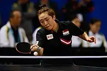 Feng Tianwei PJG (Chinese: 冯天薇; pinyin: Féng Tiānwēi, pronounced [fə̌ŋ tjɛ́nwéi]) is a retired Singaporean table tennis player. Born in Harbin, China, she permanently moved to Singapore at the age of 20 under the former Foreign Sports Talent Scheme in March 2007 and commenced her international career in competitive table tennis the following month.