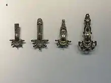 There are numerous types of post-Roman fibulae. The so-called Gothic group of bow fibulae have a round or triangular flat head plate, often with 3, 5 or 7 knobs, a small arched bow and a long flat diamond shaped foot. They were widely used by the Germanic Visigoths, Ostrogoths, and Gepids, and the non-Germanic Slavs and Avars, and are found over a wide part of southern and western Europe in the 5th and 6th centuries AD. Some historians have debated whether some of these Gothic fibulae could also be attributed to the Vandals.[6] There are also a wide variety of Anglo-Saxon fibulae from the 5th to 7th century such as the equal-arm type and the small-long type. Most Viking fibulae are variations on the ring or annular design (see below).