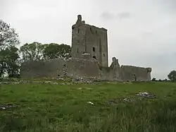 This tower house is most noted for its well preserved inner bawn wall. It is located on private land and maintained by the Office of Public Works.
