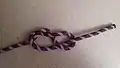 The figure-of-nine loop is a type of knot to form a fixed loop in a rope. Tied in the bight, it is made similarly to a figure-of-eight loop but with an extra half-turn before finishing the knot.[1]