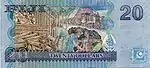 $20 | 146 × 67 mm | Blue | Foa; domodomo (canoe masthead) as registration device; Queen Elizabeth II; Fijian coat of arms | Fish processing; cutting lumber; mining; train; Mount Uluinabukelevu | 2007[9] | 10 April 2007 | Fijian head and electrotype 20 |