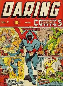 ![]() The Fin makes his first appearance (upper left). From Daring Mystery Comics #7 | |