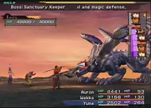 Final Fantasy X introduces the Conditional Turn-Based Battle (CTB) system in place of the series' traditional Active Time Battle (ATB) system first used in Final Fantasy IV. Whereas the ATB concept features real-time elements, the CTB system is a turn-based format that pauses the battle during each of the player's turns. Thus, the CTB design allows the player to select an action without time pressure.[6] A graphical timeline along the upper-right side of the screen details who will be receiving turns next, and how various actions taken will affect the subsequent order of turns. The ordering of turns can be affected by a number of spells, items, and abilities that inflict status effects upon the controlled characters or the enemies.[7] The player can control up to three characters in battle, though a swapping system allows the player to replace them with a character outside the active party at any time. "Limit Breaks", highly damaging special attacks, reappear in Final Fantasy X as "Overdrives". In this incarnation of the feature, most of the techniques are interactive, requiring button inputs to increase their effectiveness. While initially the Overdrives can be used when the character receives a significant amount of damage, the player is able to modify the requirements to unlock them.[8]
