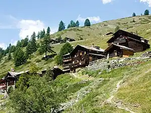 Findeln is a group of hamlets above Zermatt in the canton of Valais. They are located on the south facing slopes of the Sunnegga–Unterrothorn–Oberrothorn mountains. The main hamlets are Eggen (2,177 m) and Ze Gassen (2,051 m), where there is a chapel. Both are easily accessible by the Zermatt–Sunnegga funicular.