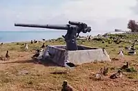 In February 1942, a Japanese submarine bombarded the atoll. In June 1942, the Battle of Midway was won by American forces. The Marines by that time had received reinforcements, both personnel and some newer and bigger guns, all of which were used by the Marine garrison when they engaged attacking Japanese A6M2 Zeros in June 1942.[3]