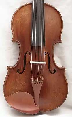 A five-string violin is a variant of violin with an extra string tuned below the violin's usual range. In addition to the G, D, A, and E strings of a standard violin, a five-string violin typically includes a lower C string.[1] Violins with 6 or more strings may add a low F, low B♭, low E♭, or a soprano violin high A (sometimes a high B).