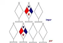 - In case other flags go next to it, the flag will go in case of being an even number of flags in the right center; if there is an odd number of flags, it will go to the center of these. In case of carrying flags behind it, they will go with the same size and quality as the Panamanian flag.