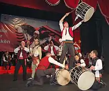 Here are presented singers, dancers, and artists from all Albanian regions, who present Albanian folk.[27] Singers interpret on stage accompanied by the Artistic Musicians Group.[28] Fest Flame also has a competitive nature, where in the end, professional jury selects the best songs of the year, where are given three main awards.[29]