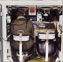 The auxiliary engine is coupled with five generators to operate at different speeds: Two Metadyn machines in tandem with a flywheel (which is used to store energy during the acceleration and deceleration of the turret) for the power of the elevation and traverse drives, two 380 Hz three-phase generators with a capacity of 20 kVA for the ventilation, fire-control and radar systems, and a 300 A 28 volt direct current generator for the electrical system. The fuel capacity is 985 liters, which ensures a combined operating time of approximately 48 hours.