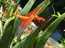 The flame skimmer or firecracker skimmer (Libellula saturata) is a common dragonfly of the family Libellulidae, native to western North America.