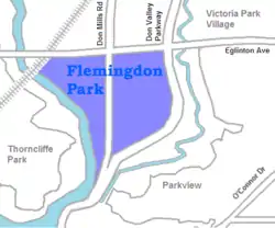 Flemingdon Park is a neighbourhood in Toronto, Ontario, Canada, located in the city's North York district. It is part of the Don Valley East federal and provincial electoral districts, and Ward 26: Don Valley East (South) municipally. In 2011, its population was 22,205.[1] The average income was $66,784.[2]