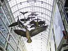 In Snow's original preparation for the work, the title was given as Flight Stop (and indicated as the "Flight Stop project" in the archival materials).[5] However, in a number of monographs and catalogues, the work is called Flightstop.[6][7] Now a tourist destination, Flight Stop is one of Snow's most famous and highly visible works, and the work has become iconic for the Toronto Eaton Centre[8][9] and a part of the visual identity of the mall.[10][11]