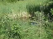 Bog Labrador Tea (Ledum groenlandicum), Sphagnum mosses, and cloudberry (Rubus chamaemorus) flourish in the peatland areas.[13] Bogs have a high acidic layer, high water table and low nutrients.[19] Fens support the brown mosses such as Drepanocladus, Brachythecium, Calliergonelia, Scorpidium, Campylium. Reed Grass (Calamagrostis), Willows, marsh cinquefoil (Potentilla), and False Solomon's Seal (Maianthemum racemosum) gow in fen regions.[13] Fens have a high water table with slow drainage which is rich in nutrients.[19] Marshes are surrounded by willows and support Marsh reed grass (Calamagrostis), Kentucky blue grass (Poa pratensis), Fowl blue grass (Poa palustris), beaked sedge (Carex rostrata), bulrush (Scirpus validus and S. acutus).[17] Marshes have slow moving slightly alkaline water and are very rich in nutrient and minerals. Bogs, fens, and marshes together comprise muskeg regions.[19] Hardiness zone 1a describes the Southern Boreal Forest.[18]