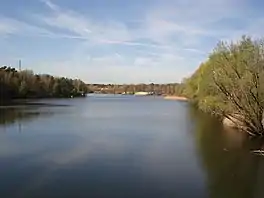 Flughafensee is a lake near Tegel Airport in the borough of Reinickendorf in Berlin, Germany. Its surface area is 30.6 hectares (76 acres). It was formed by gravel quarrying operations in the period after the second world war. After operations were shut down in 1978, it was gradually taken over by the local population as a recreational lake[1] with beaches and an angling club.[2] The lake is surrounded by woodland, part of the Jungfernheide area.