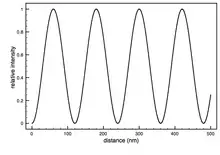FLIC occurs whenever fluorescent objects are in the vicinity of a reflecting surface (e.g. Si wafer). The resulting interference between the direct and the reflected light leads to a double sin2 modulation of the intensity, I, of a fluorescent object as a function of distance, h, above the reflecting surface. This allows for the nanometer height measurements.