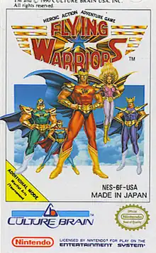 Flying Warriors is an action video game developed and published by Culture Brain for the NES in North America in February 1991. It is a mixture of two Family Computer video games in the Hiryū no Ken franchise: Hiryu no Ken II: Dragon no Tsubasa and Hiryu no Ken III: 5 Nin no Ryuu Senshi. It implements ideas and elements from both games.