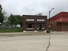 Fontanelle was platted in 1855,[3] by New York state native James C. Gibbs (1820–1907),[4] who followed the arrival of a transient named Collins.[5] In the summer of that year, Gibbs purchased lots on the northeast of the city square where he constructed a large log cabin. He brought his family there to live. Gibbs ran a hotel out of the log cabin briefly.[5] He died in 1907, aged 86, and is buried with his wife, Phebe, in Fontanelle Cemetery.[4]