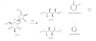 Example caramelization of table sugar (sucrose) caramelizing to a brown nutty flavor substance (furan and maltol)