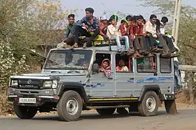 The vehicles are of simple and durable construction, suited for the severe conditions found in the Indian countryside. Originally there were three models; the Town and Country, the Trax Challenger, and the Pick-up. In 1998, the four-wheel drive "Tempo Trax Gurkha" was introduced, originally aimed mostly at military users.[1] Since then, a plethora of versions have appeared: open top SUVs, comparatively luxurious station wagons, dropside pickups (Kargo King), ambulances, vans, and many special bodies are offered on three different wheelbases of 2,400 mm (94 in), 3,030 mm (119 in) (Kargo King),[2] or 3,050 mm (120 in).[3] The Trax can hold up to 13 passengers in the LWB versions.[4]