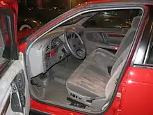 The interior of the Taurus was highly customizable by the buyer to fit their needs, as it had a large number of options, as well as being available in three different configurations.[22] This meant that the Taurus interior could be spartan or luxurious, depending on the buyer's choice of options.[21] The interior equipment depended on model. The most basic model, the L (see below), came standard with just an AM radio and a front cloth bench seat,[21] while the LX, the highest model, came with a large amount of standard equipment.[21]