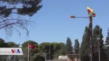 Turkey – Neighbouring Turkey has received PYD co-chair Salih Muslim for talks in 2013[62] and in 2014,[63] even entertaining the idea of opening a representation office for the autonomous region in Ankara "if it's suitable with Ankara's policies."[64] Nonwithstanding, Turkey is persistently hostile, because it feels threatened by the autonomous region's emergence encouraging activism for autonomy among Kurds in Turkey and the Kurdish–Turkish conflict, and in this context in particular the autonomous region's leading Democratic Union Party (PYD) and the YPG militia being members of the Kurdistan Communities Union (KCK) network of organisations, which also includes both political and militant assertively Kurdish organizations in Turkey itself, including the Kurdistan Workers' Party (PKK). Turkey's policy towards the autonomous region is based on an economic blockade,[65] persistent attempts of international isolation,[66] opposition to the cooperation of the international Anti-ISIL-coalition with the militias of the autonomous region,[67] and support of Islamist Syrian Civil War parties hostile towards the autonomous region,[68][69] in past times even including ISIL.[70][71][72] Turkey has on several occasions also been militarily attacking the territory of the autonomous region and defence forces.[73][74][75] The latter has resulted in some of the most clearcut instances of international solidarity with the autonomous region.[47][76][77] In the perception of much of the Turkish public, the federal project of the autonomous region as well as U.S. support for the YPG against ISIL are elements of a wider conspiracy scheme by a "mastermind" with the aim to weaken or even dismember Turkey, in order to prevent its imminent rise as a global power.[78] Kurdish opposition party leader Selahattin Demirtaş has argued for Turkey and other countries to recognize the autonomous region and work with it as a partner.[79][80]