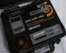 A forensic disk controller or hardware write-block device is a specialized type of computer hard disk controller made for the purpose of gaining read-only access to computer hard drives without the risk of damaging the drive's contents. The device is named forensic because its most common application is for use in investigations where a computer hard drive may contain evidence. Such a controller historically has been made in the form of a dongle that fits between a computer and an IDE or SCSI hard drive, but with the advent of USB and SATA, forensic disk controllers supporting these newer technologies have become widespread. Steve Bress and Mark Menz invented hard drive write blocking (US Patent 6,813,682). [1]