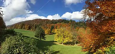 The country's forests are composed of a total wood volume of about 422 million cubic meters. There are 67% softwoods, mainly firs and spruces, and 33% hardwoods, with mainly beech. Since the 2010s, there has been a dominance of mixed stands in Swiss forests, with only 19% pure stands. According to the national forest inventory, 92% of regenerating stands come from natural seeding. There are 120 different forest types in Switzerland.[5]